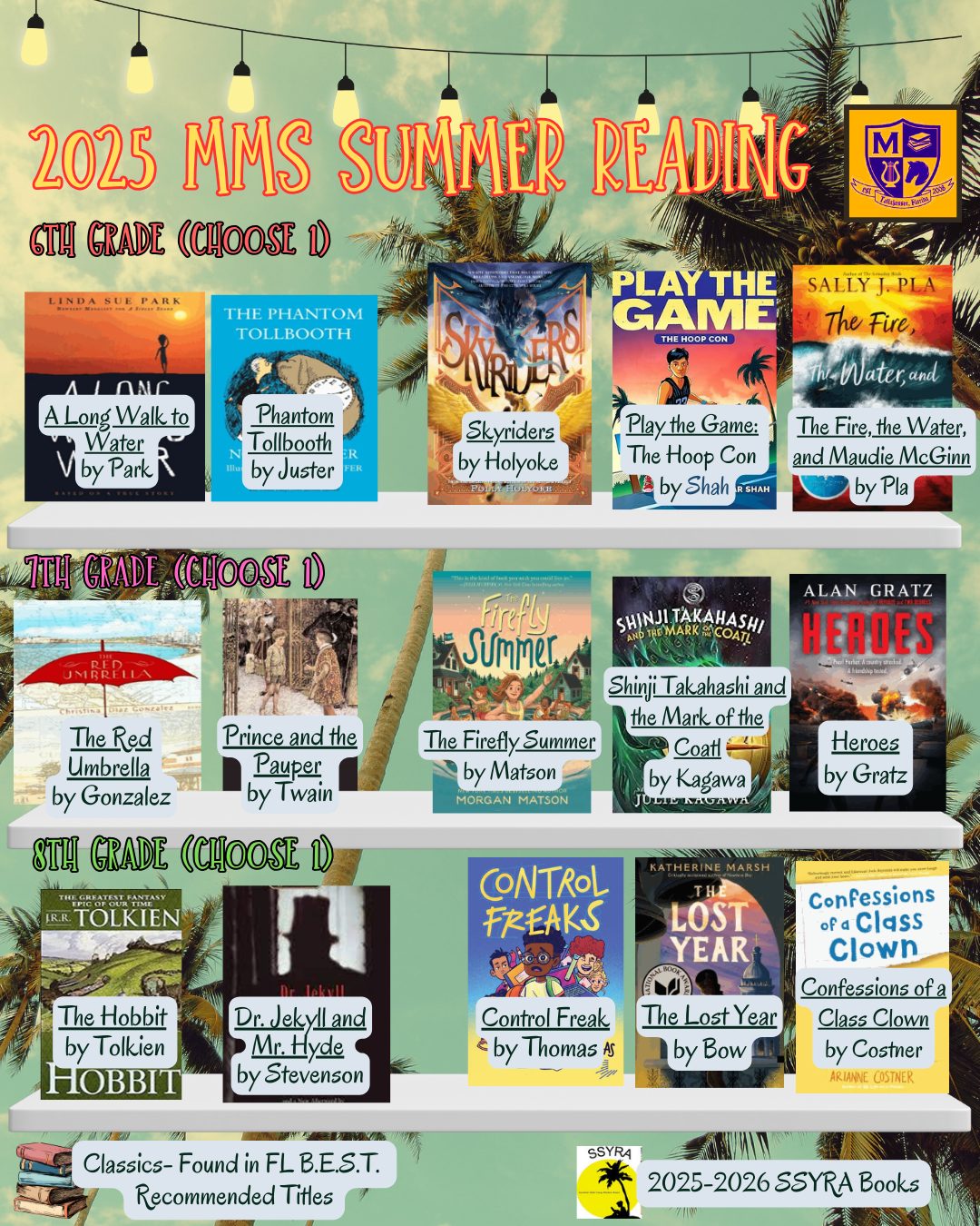 At Montford, students are encouraged to read all 15. After reading a current SSYRA book, visit the Media Center and test with Ms. Convery to earn prizes.