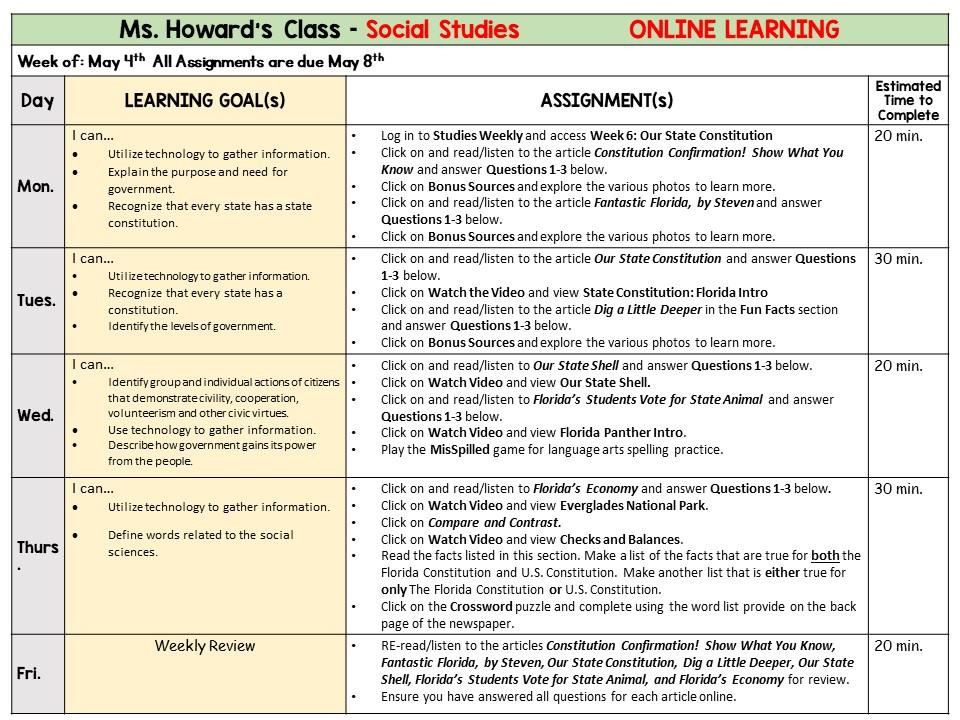 Welcome to our class information page. I am excited to begin this new adventure with all of you. On this page, you will find information about your weekly assignments, my office hours, special area schedules, celebratory shout outs, announcements, and much more.