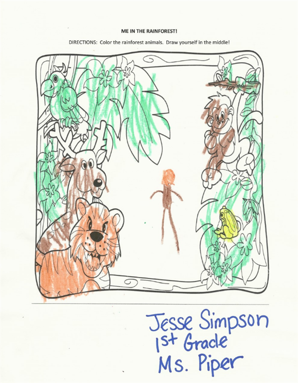 4. Click here to find our rainforest activity page. Color the rainforest animals and draw yourself in the forest! OR On your own paper, draw a picture of yourself using your COOPERATION and TEAMWORK skills. Remember to send your art to me and I will add it to our gallery. I love to see and share your work.