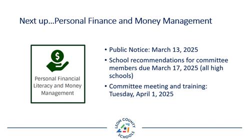 Personal Financial Literacy and Money Management Public Notice