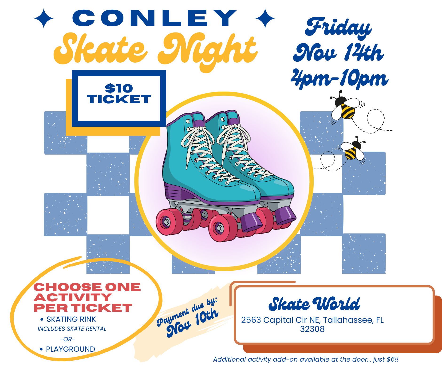 Posted by Paige (Elizabeth) Centers on 11/20/2025Tomorrow, Friday November 21st is our Conley Run Run! Make sure your child comes to school...⭐Wearing Conley colors and spirit wear.⭐Wearing sneakers or other athletic shoes.⭐Wearing comfortable clothes.⭐With a water bottle. -